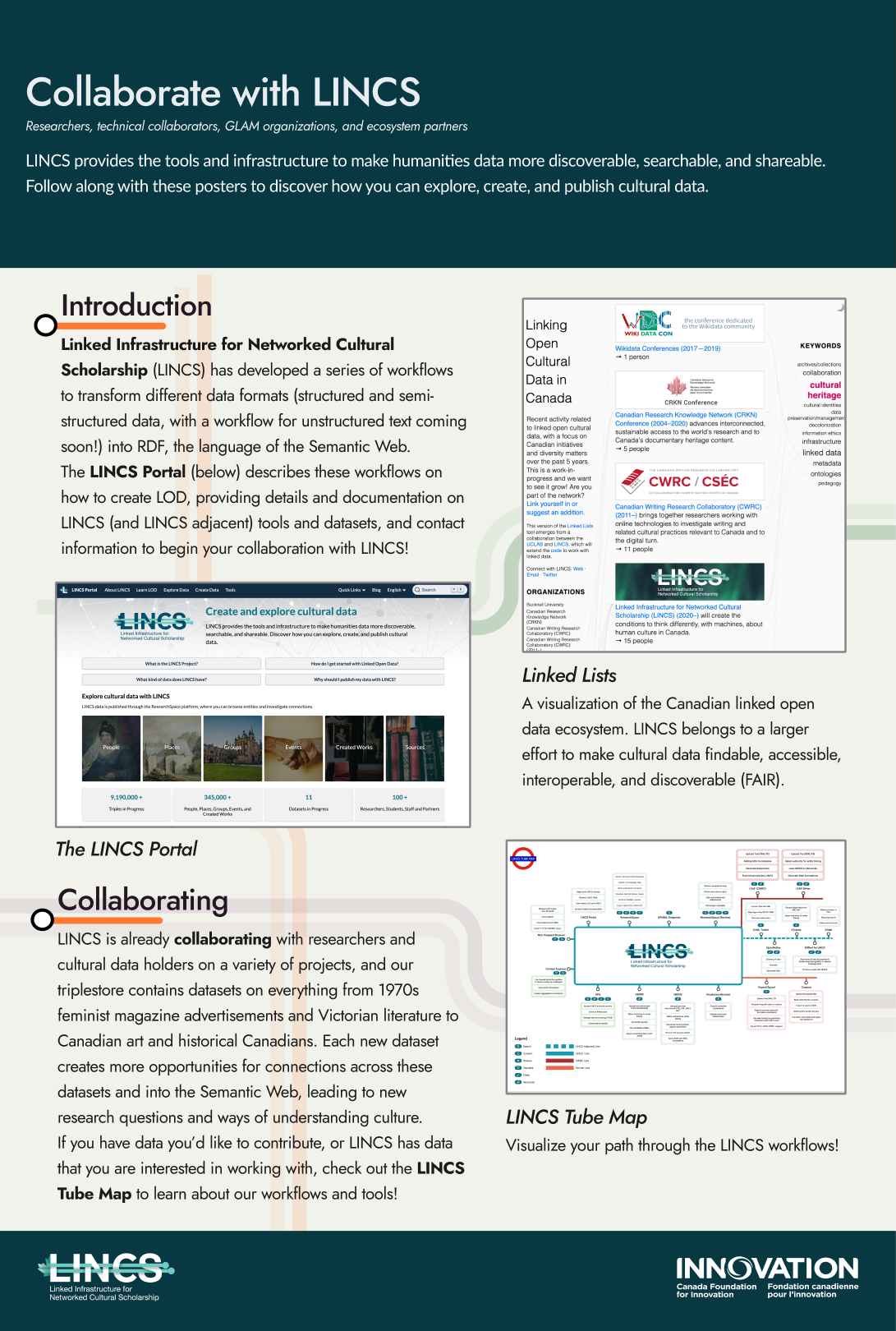 - Martin, Kim, Susan Brown, Alliyya Mo, and Deb Stacey. “LINCS: From Context to Reconciliation to Exploration.” Poster presented at Congress of the Humanities and Social Sciences 2023. York University. May 31, 2023.