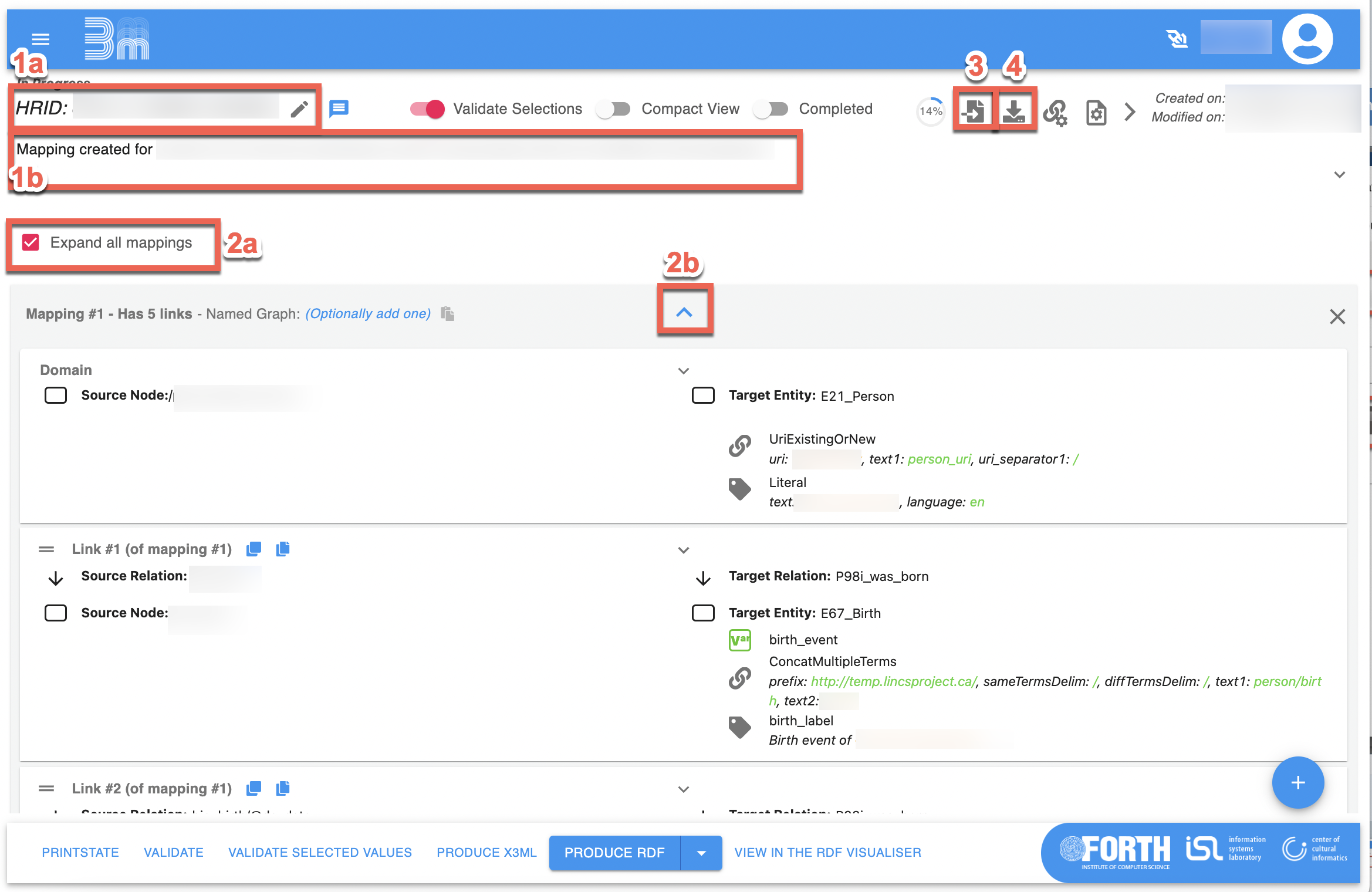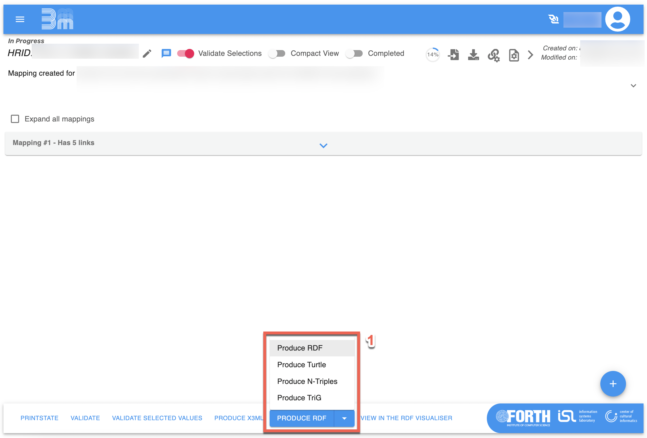 | Mappings Overview page with Produce RDF outlined. |