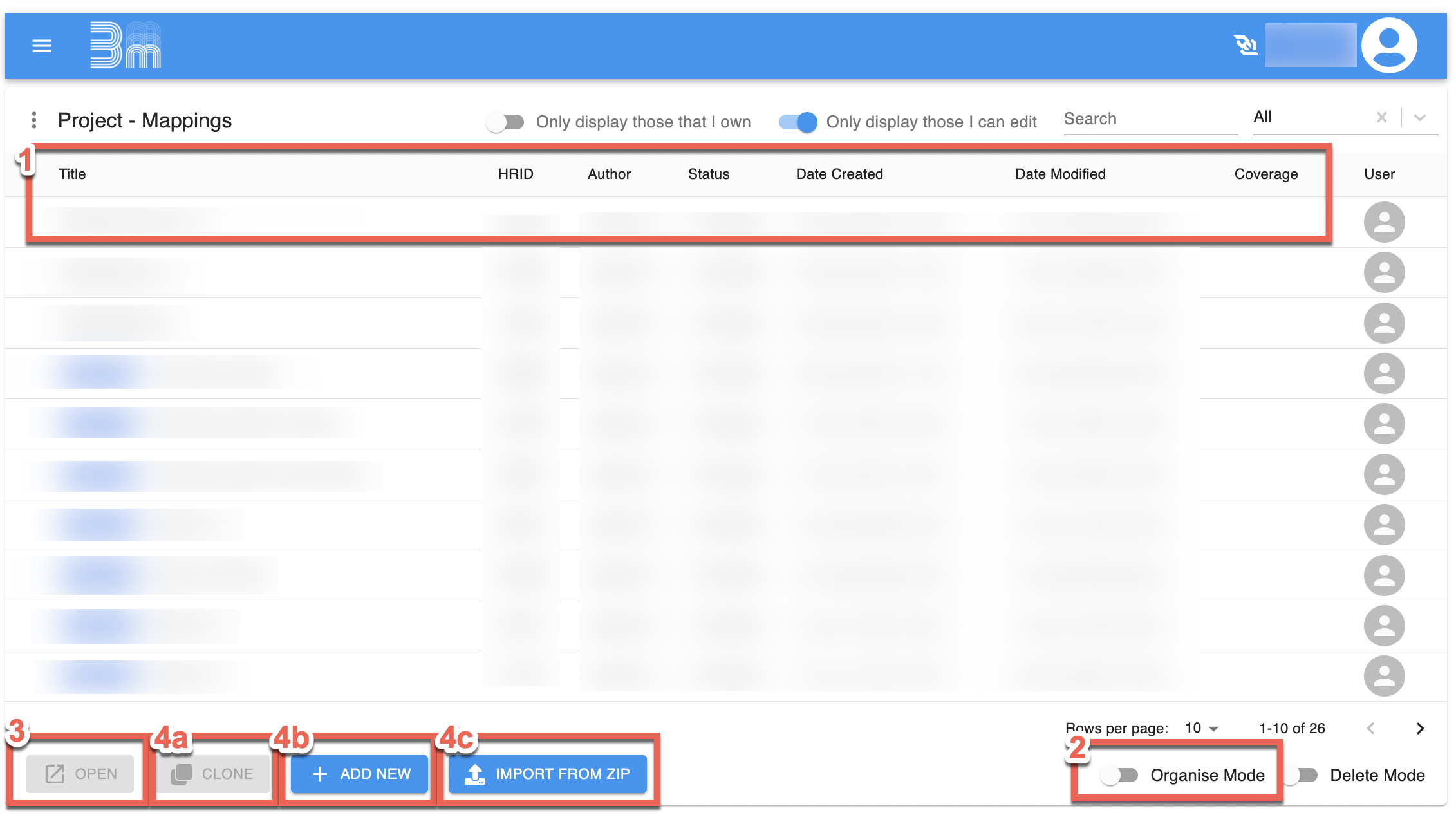 On the Mappings Overview page you can: