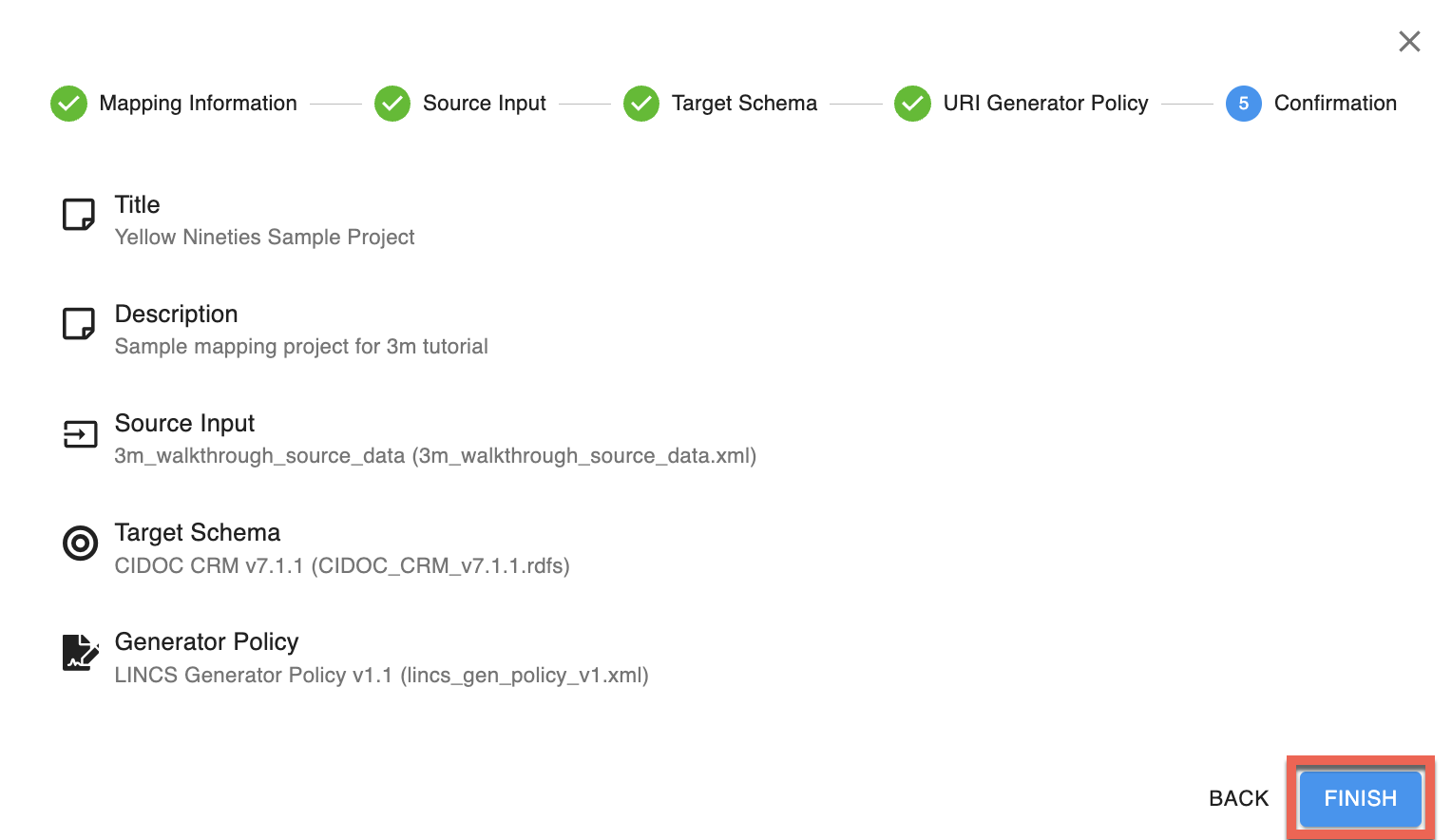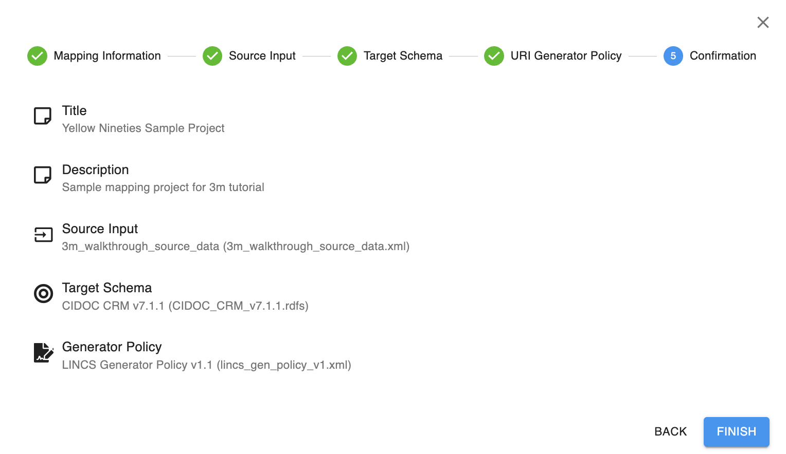 Le titre et la description sont uniquement pour votre référence et ne seront pas inclus dans les données converties. [LINCS a suggéré des normes de titre et de description (/docs/tools/x3ml/create-mapping/recommendations).